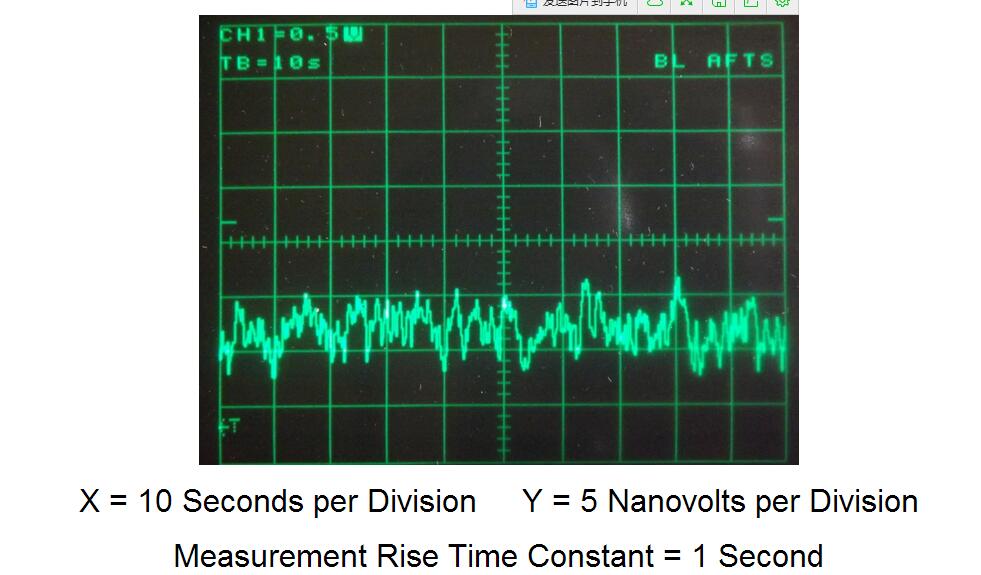 等效噪声电阻约为700Ω。噪声电压峰峰值取决于所选择的带宽。在稳定时间常数为1s时,噪声电压峰峰值约为7nV(99%的时间),均方根值约为1.4nV。
